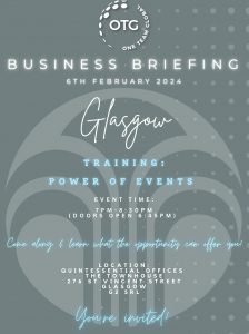 The Glasgow team will be hosting their monthly business briefing in Glasgow to share the business opportunity Please come along & invite as many people as possible! Ticket link below: https://buytickets.at/otg/1119139